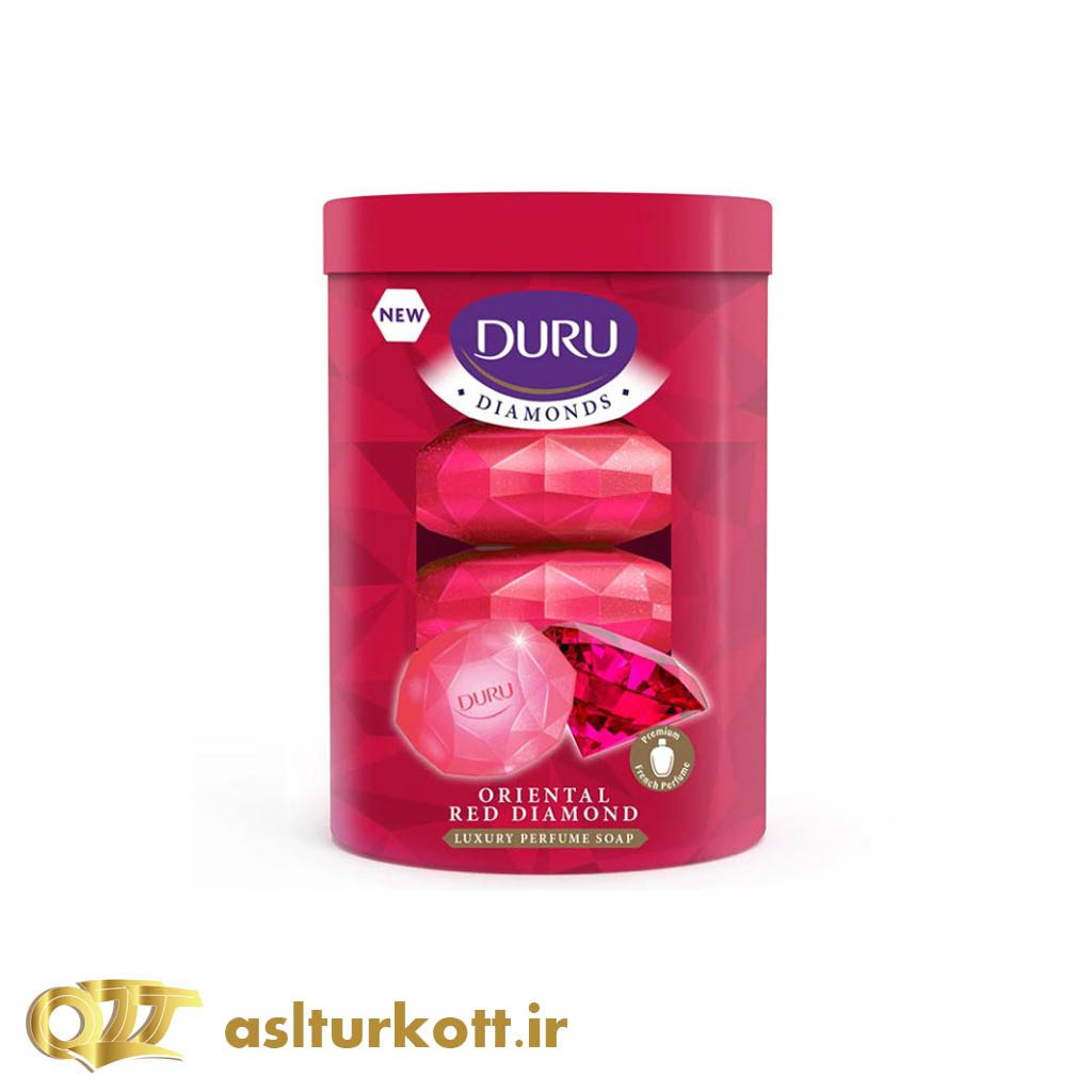 صابون زیبایی دورو Duru مدل الماس قرمز شرقی با قدرت کف کنندگی بالا، مناسب برای استحمام و شستشوی صورت و بدن می باشد. این محصول یا کیفیت با حفظ رطوبت پوست، آن را به صورت عمیق آبرسانی کرده و مانع از خشکی پوست می شود.