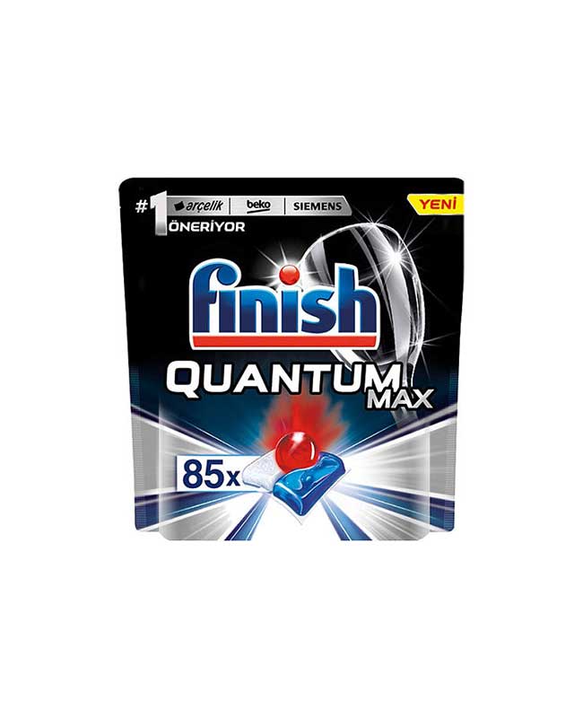 قرص ظرفشویی فینیش مدل کوانتوم مکس جدیدترین محصول و تکنولوژی فینیش در قرص های ظرفشویی می باشد.این قرص که در برگیرنده سه محصول توپ و پودر و ژل هست. توپ قرمز رنگ مرکزی وظیفه براق و درخشان کردن ظروف، قسمت ژله ای این محصول وظیفه چربی زدایی ا به نحو احسن انجام داده و قسمت پود آن موظف به از بین بردن لکه ها و سوختگی های های شدید چسبیده به ظروف را انجام می دهد. این محصول فینیش از هر نظر برای شستشوی ظرف کافی و قدرتمند میباشد.قرص کوانتوم مکس فینیش علاوه بر شستشوی تمیز و کامل در هزینه و وقت و بویژه در آب صرفه جویی بسیار خوبی به ارمغان می آورد بطوریکه در هر شستشو حدود 56 لیتر فقط در آب صرفه جویی می کند. روکش ژله ای این محصول در آب براحتی حل مشیود پس به هیچ وجه نباید روکش را پاره یا سوراخ کرد. وجه تمایز فینیش با دیگر برند ها این هست که قرص فینیش براحتی در دمای پایین نیز حل شده و شستشو را قدرتمند ادامه میدهد.