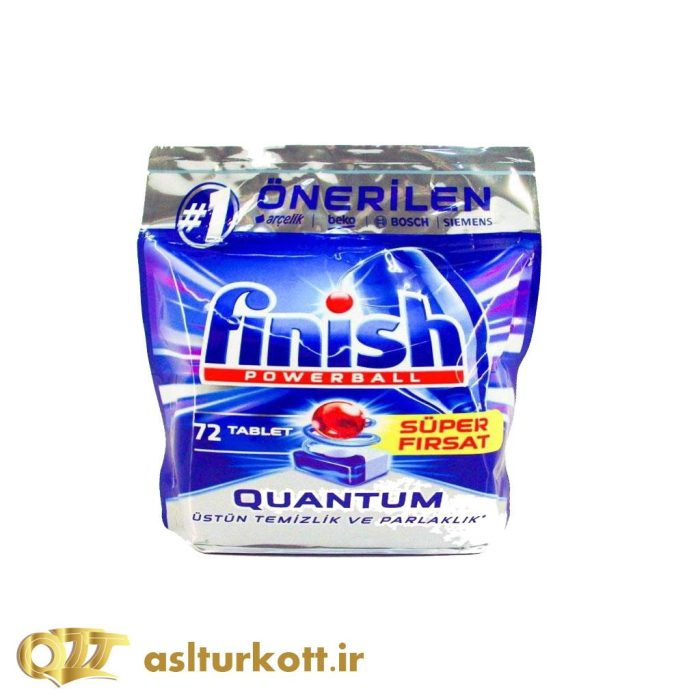 قرص ماشین ظرفشویی فینیش با قابلیت تمیزکنندگی فوق العاده قوی، براق کنندگی، چربی و لکه زدایی و همچنین جلوگیری از ایجاد رسوب و آهک در ماشین ظرفشویی یکی از بهترین انتخاب ها برای شستشوی ظروف است. این محصول بدون رایحه عرضه است و عطر خوش پاکیزگی در ظروف و دستگاه به جا می گذارد. این محصول جدیدترین سری قرص ماشین ظرفشویی برند finish بوده که به دلیل داشتن فرمول پاوربال حتی سخت ترین لکه های سوخته و خشک شده غذا را از بین می برد. نحوه استفاده از قرص ماشین ظرفشویی بسیار آسان است. کافیست ابتدا باقیماندهی ذرات غذایی ظروف را پاک کنید و طبق دستورالعمل سازنده ی ماشین ظرفشویی، قرص را درون ماشین قرار دهید. مشخصه ها این محصول با قدرت تمیز کنندگی بالا نیاز به خیساندن ظروف را از بین می برد و بنابراین به صرفه جویی در مصرف آب تا 57 لیتر کمک شایانی می کند. سبب براق و درخشان شدن بینظیر ظروف شیشه ای می شود و از ظروف شیشه ای محافظت کرده و مانع لب پر شدن ظرف ها می گردد. این محصول برای کسانی که غذا خوردن و غذا درست کردن را دوست دارند؛ کار سخت شستن ظروف را آسان تر می کند. دیگر بدون اینکه به مشکل شستن ظروف فکر کنید می توانید از خوردن غذا کنار کسانی که دوست دارید لذت ببرید. قابلیت چربی زدایی این محصول سلامت طولانی مدت دستگاه را تضمین می کند. در نتیجه با پیشگری از بروز خرابی در دستگاه، هزینه تعمیرات آن را کاهش می دهد. برای استفاده از آن نیازی به جدا کردن پوشش قرص نیست و قابلیت حل شدن در آب را دارد. فینیش کوانتوم با قیمت مناسب و موادی که درونش دارد پاک کنندگی قدرتمندی ارائه می دهد، نسبت به پاکسازی لکه های سرسخت نیز نتیجه ای موفقیت و انتخابی اقتصادی خاهد بود