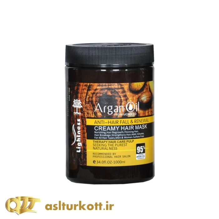 ماسک مو آرگان Lightness، حاوی روغن آرگان، مناسب برای رطوبترسانی، درخشانکنندگی و شادابی ساقه مو. تقویت ساقه مو و از بین بردن آسیبهای ناشی از حرارت (اتو مو و سشوار) و مواد شیمیایی (رنگ مو و دکلره) میباشد. تماس ماسک مو لایتنس با پوست سر مانعی نداشته، و بنابراین افراد دارای موهای کوتاه نیز میتوانند از این محصول استفاده کنند. ماسک مو آرگان Lightness به دلیل دارا بودن روغن آرگان و ویتامین E ، باعث درخشندگی و شفافیت موها شده و آنها را از حالت کدر بودن خارج میکند. ماسک مو لایتنس از ریزش موها جلوگیری کرده و باعث استحکام بیشتر تارهای مو میگردد. با استفاده از این محصول موهای شما در برابر عوامل آسیب زنندهای همچون حرارت و رنگ های شیمیایی، محافظت و آسیب کمتری خواهد دید. ماسک تقویت مو لایتنس حاوی مواد مغذی مورد نیاز تارهای مو و پوست سر میباشد و موهای آسیب دیده در اثر رنگ کردنهای مکرر و حرارات زیاد را ترمیم میکند و باعث بازسازی ساختار مو میشود. ماسک تقویت مو لایتنس با داشتن روغن آرگان، موجب میشود تا موهای شما، نرم و لطیف همچون ابریشم باشد. روغن آرگان موجود در ماسک تقویت مو لایتنس به عنوان یک روغن ضد پیری، غنی از ویتامینها و مواد مغذی است که جهت مراقبت از پوست نیز استفاده میشود. این روغن یک آنتیاکسیدان طبیعی است و میتواند با افزایش اکسیژن رسانی درون سلولی خطوط و چین و چروک صورت را صاف نماید و به دلیل ایجاد قابلیت ارتجاعی به محافظت بازسازی سلولهای پوست کمک کند.